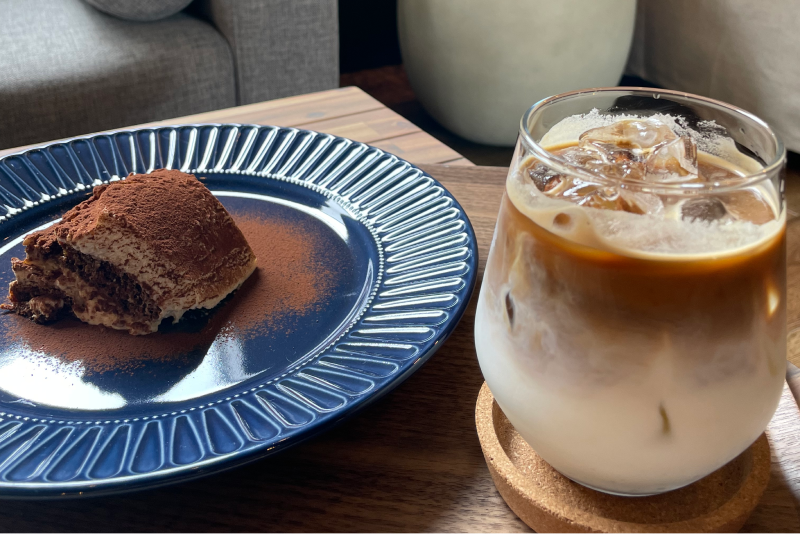 落ち着いた店内でスイーツとコーヒーをのんびり楽しめるcafe。